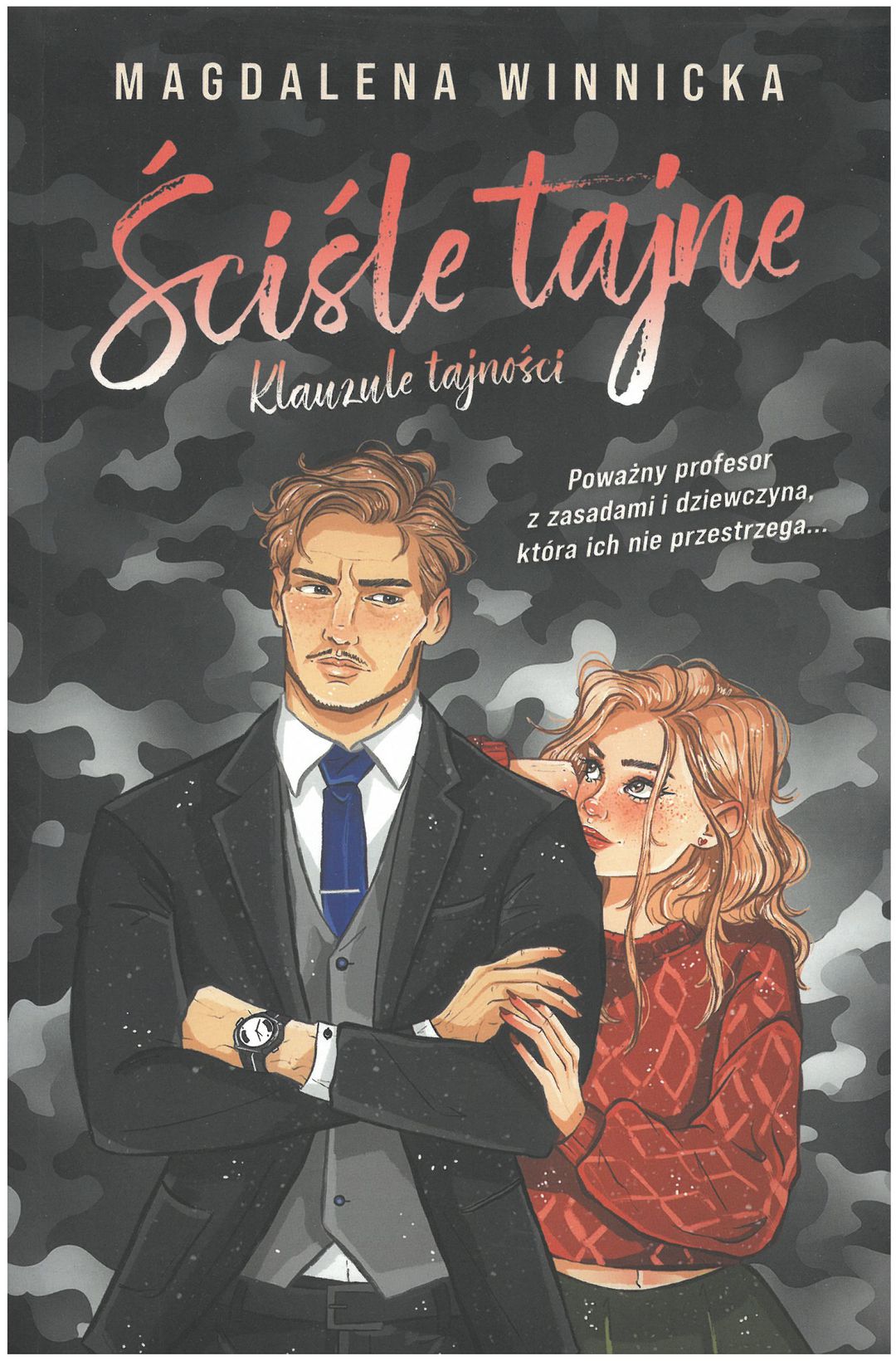 Krystian to chodzący kodeks i mistrz dystansu, a przy tym major ABW i wykładowca w Wyższej Szkole Kryminologii i Kryminalistyki. W życiu kieruje się prostymi zasadami. Jest zadanie do wykonania, trzeba je zrealizować. Nie ma miejsca na półśrodki. A także na uczucia. To nie jego działka. I naprawdę w to wierzy! Naiwność tego mężczyzny to jedna z wielu rzeczy, które urzekają Sarę. Ta urocza dziewczyna o niepokornych myślach z anielską cierpliwością powstrzymuje się przed kwestionowaniem postanowień swojego nieco cynicznego profesora. Z wielką radością przymknęłaby też oko na granice, które ten wyznacza. I bardzo chętnie przestrzegałaby wszystkich jego bezsensownych zasad. Tylko co mogłoby wyniknąć ze starcia burzowej chmury z promieniem słońca? Może lawina śmiechu, elektryzująca chemia między bohaterami i uczucia, które rozwijają się powoli, ale kipią od tłumionego napięcia? Jedno jest pewne - wszystko musi pozostać… ściśle tajne!